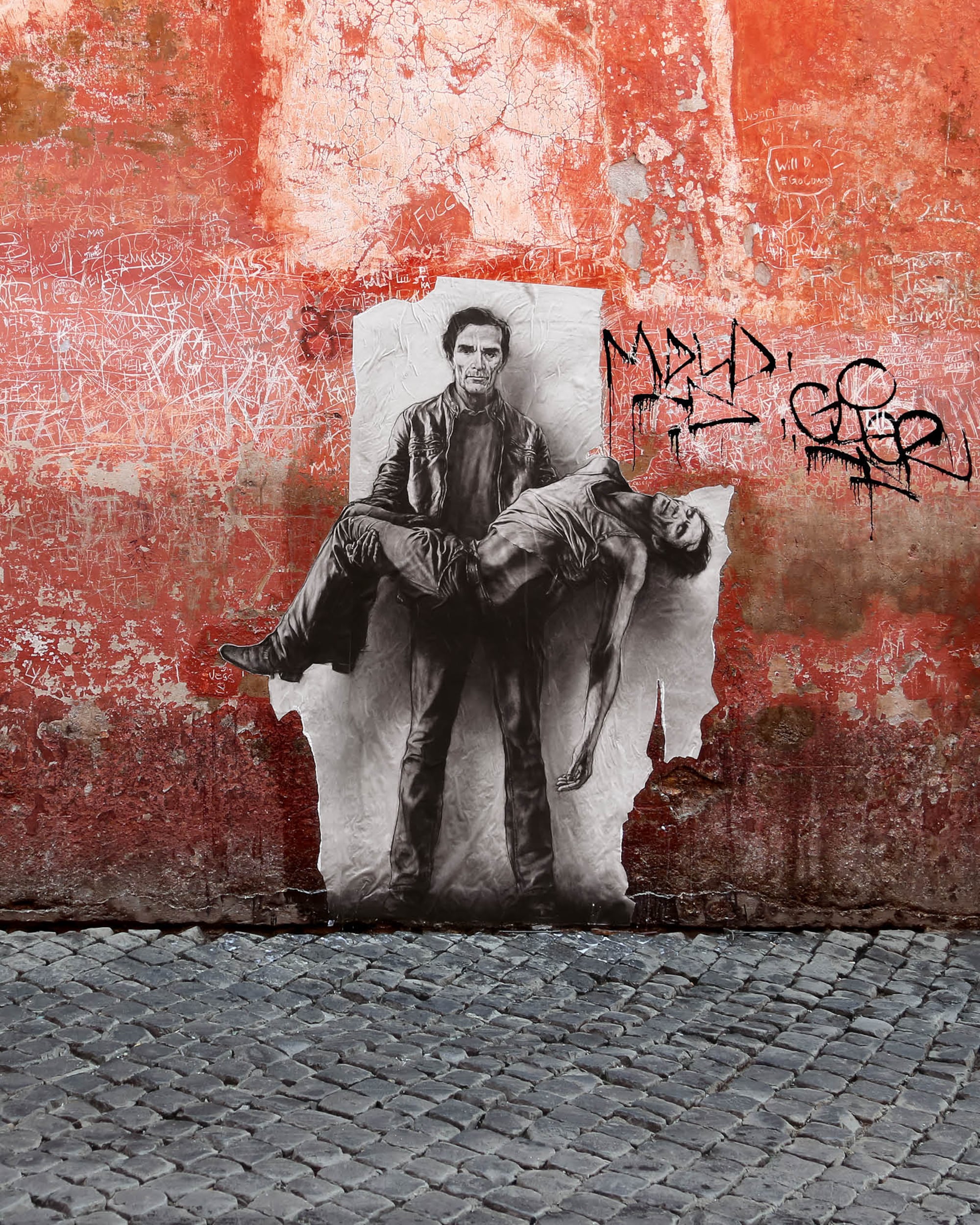 Since the 1960s and for decades before the emergence of “street art”, Pignon-Ernest was paving an adventurous path, combining technical mastery, existential integrity, and the ability to “poetically inhabit the world”, highlighting the notion of “the foreigner,” a foundational element in his works. Across every continent, Pignon-Ernest explores the destinies of those individuals who break the conventional way or are myths to be revived, creating life-size images in everyday environments in a meaningful way.