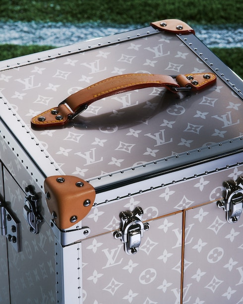 Louis Vuitton joined forces with the French Tennis Federation for the 2017 and 2018 editions of Roland Garros. The trophies were presented in their trunks before the kick-off finals match for both the Women’s Singles and Men’s Singles, and along court-side. The collaboration results in trunks adorned with the iconic Monogram canvas and a terracotta-colored interior evocative of clay, while a 'V' reminiscent of the lines on a tennis court adds the finishing touch.