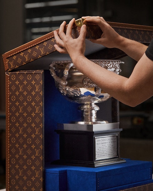 Honouring the Maison’s long-standing commitment to tennis, Louis Vuitton joined forces with the Australian Open 2024 for the first time, as the event’s Official Trophy Trunk partner, creating two bespoke Monogram cases to protect the event’s Daphne Trophy for Women and Norman Trophy for Men. Displayed during the final tournaments and the prestigious prize-giving ceremonies, the two custom-made cases are lined in blue to match the competition's colour codes, while a white AO logo features on the underside of the lid.