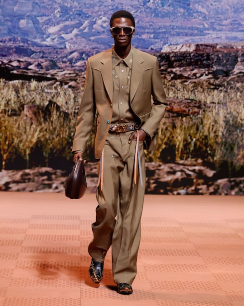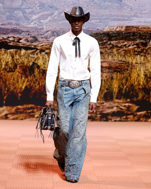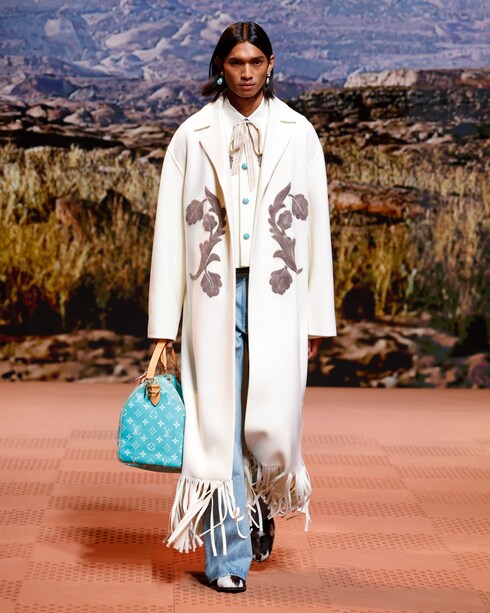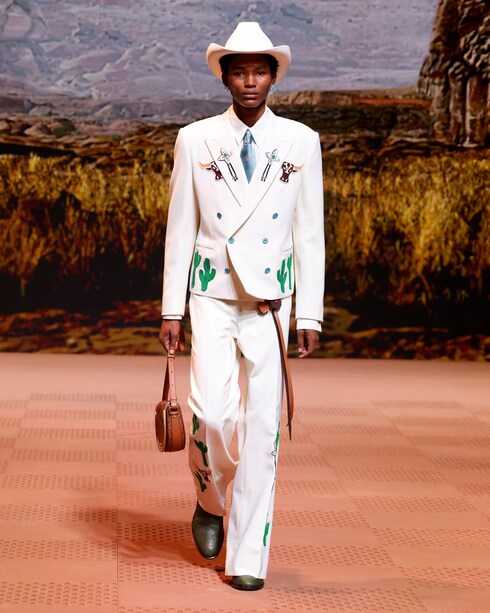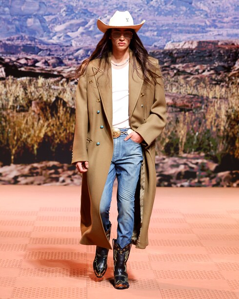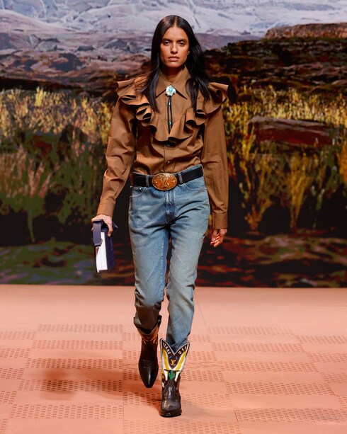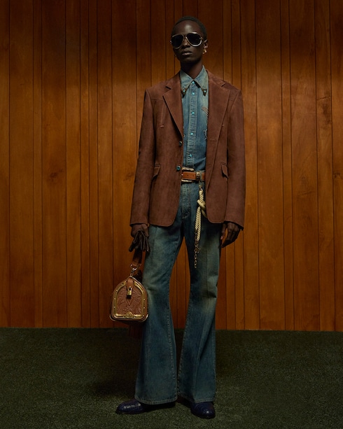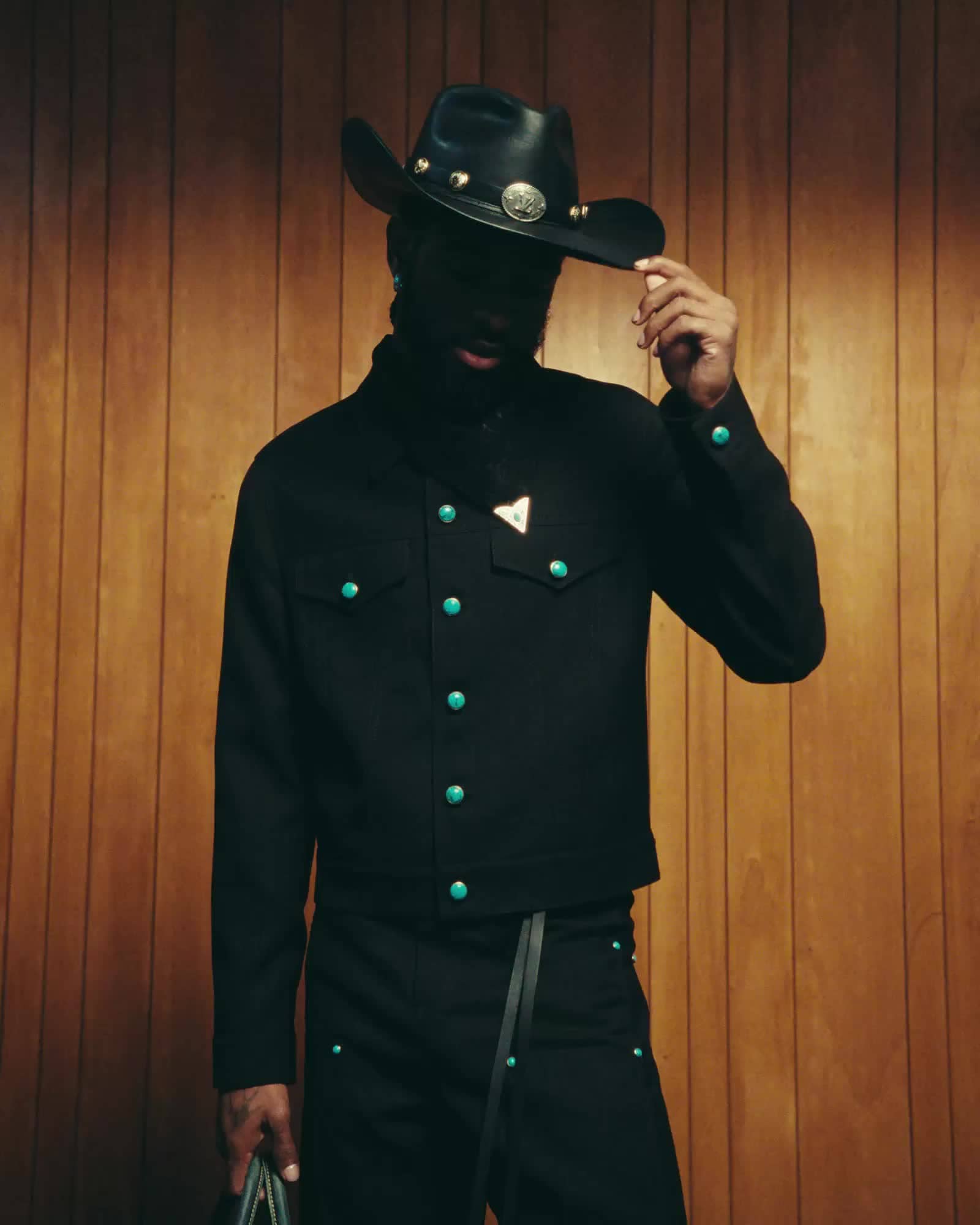 Evoking the iconography of the American Western wardrobe, cowboy-inspired silhouettes and workwear details are imbued with the Maison's heritage signatures. Punctuated by quintessential adornments and refined materials, iconic bags and accessories exude nuanced style codes of the frontier.