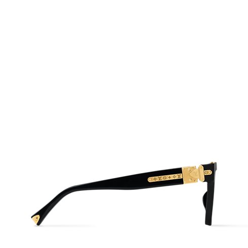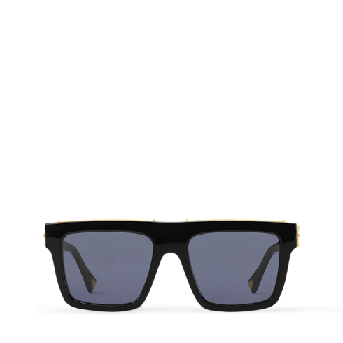 Crafted in Italy from glossy acetate, the 1.0 Millionaires are coming this season into a large square sunglasses unite a sleek, black frame with a downtown silhouette. The flat brow features a gold-toned bar on top and a Monogram-engraved accent accessorizes the temples and S-lock hinges reminiscent of the trunk hardware.