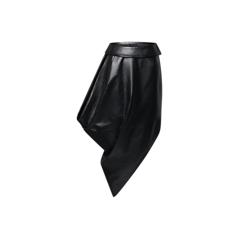 Informed by architectural innovation, this skirt from the runway collection is sleek and sculptural in polished full-grain lambskin leather draped in a structured, asymmetrical silhouette that falls to the ankle. A fold-over effect waistline and invisible side zipper complete the look with a clean finish, while a silk-blend lining elevates the comfort.