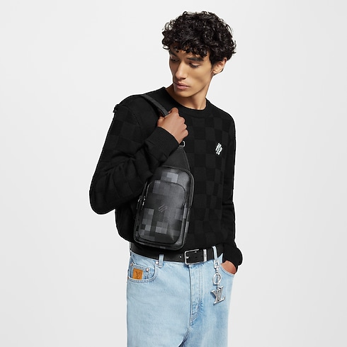 Damoflage Black coated canvas adds modernity to the Avenue Slingbag’s contemporary silhouette. The greys and blacks of the pixelated checkerboard pattern pair with matte-black hardware for a study in masculine chic. With a main compartment and two zipped pockets, the Avenue is practical. The single strap adjusts for comfortable cross-body wear. Appearance may vary slightly from photos, depending on the placement of the pattern.