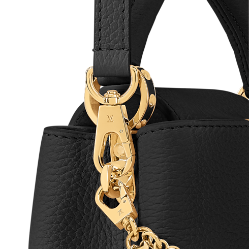 Belonging to the Why Knot collection, this version of the Capucines Mini is the perfect choice for sophisticated soirées. It is crafted from refined Taurillon leather in a timeless Black colorway and is elevated with a jewelry-inspired bi-galvanised chain that features iconic Monogram charms and delicate pearl details. The double-carry design can be styled with the flap on the inside or outside, offering versatility.