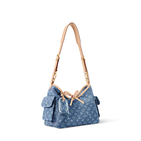 Part of the Denim Rendez-Vous collection, this Carryall Cargo PM is a seasonal take on the timeless style. It is crafted from cotton and trimmed with a contrasting leather strap and lace details. This Blue edition is adorned with gold-toned hardware and is accented with a signature name tag, paying tribute to the House’s trunk-making heritage. It can be worn cross-body, over the shoulder or carried by hand.
