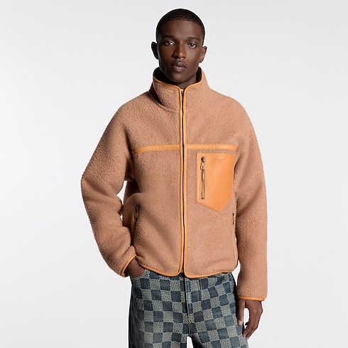 A sophisticated twist on a sporty silhouette, this outdoor jacket draws inspiration from this season’s chic mountaineering theme. It is crafted from pure cashmere double-face fabric in a classic camel color, and finished with natural leather trim on the edges and along the yoke and chest. A zippered leather chest-pocket, signed with discreetly stamped Louis Vuitton Paris lettering, adds a refined finishing touch.
