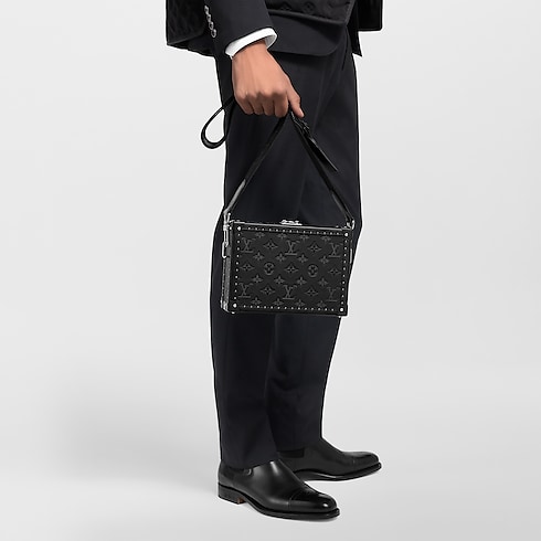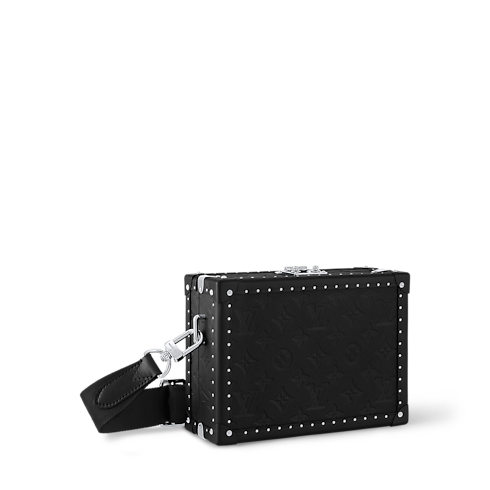 The Clutch Box in embossed Monogram Shadow leather is a tribute to the House’s trunkmaking legacy. A compact hard-sided case, it can be worn on the shoulder or cross-body with its removable and adjustable textile strap. The black-leather trim, and silver-toned rivets and S-lock, bring a modern feel. Inside, there are two gusseted compartments and a flat pocket.