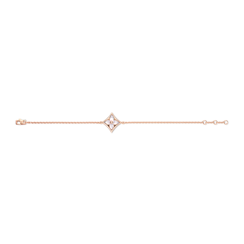 Color Blossom celebrates the Monogram flowers, created in 1896 by Georges-Louis Vuitton. Set into pink gold, the flower blooms into a carved white mother-of-pearl. Months of work were necessary to perfect the stone’s subtle curves and sparkle. The dazzling array of jewel creations is an invitation to create your own personal harmony.