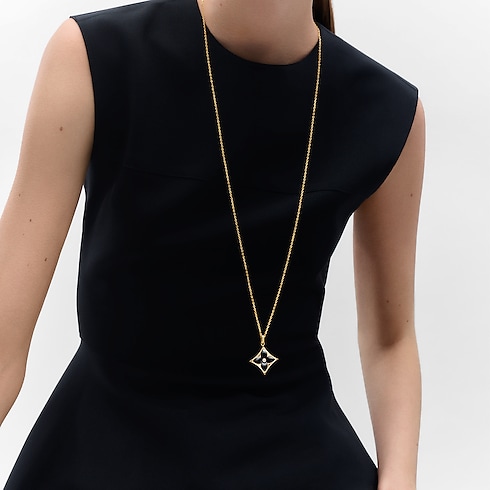With this medallion, Color Blossom celebrates the Monogram Flower, created in 1896 by Georges-Louis Vuitton. Set into 18-karat yellow gold, the pendant's petals are carved from lustrous black onyx. Perfect for layering, the medallion can be worn at three different lengths. Its bold size complements other pieces from the Color Blossom Collection.