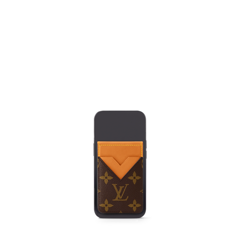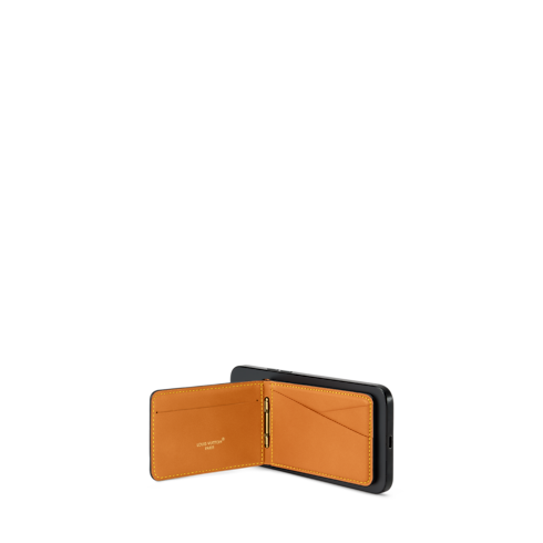 Made from Monogram canvas and natural cowhide leather, the Compact Magnet is a foldable magnetic wallet designed to attach to an iPhone. Compatible with any iPhone or case with MagSafe technology, it offers two front card slots and three inside ones. It also doubles as a stand, holding the phone upright on any flat surface.