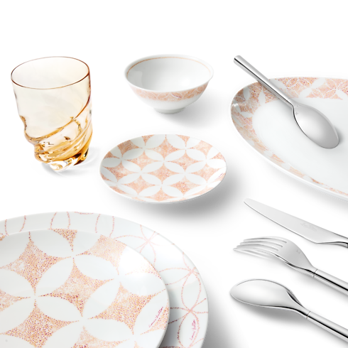 With their artistic design and flawless craftsmanship, this set of two dinner plates turns every meal into a special occasion. Expertly rendered in fine porcelain, the Constellation pattern, a delicate motif based on the Monogram Flower and Diamond, expresses a subtle House signature. A must-have for an eye-pleasing, elegant table setting, and a celebration of the art of living, Louis Vuitton style.