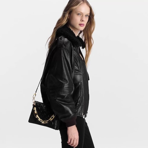 The super soft and cushiony Coussin BB is an adorably compact handbag, fashioned from puffy lambskin embossed with the Monogram pattern. A chunky gold-color chain and a thin leather strap, both removable, enable different attitudes and carry options. Two inside compartments add practicality, making this an ideal day-to-evening accessory.