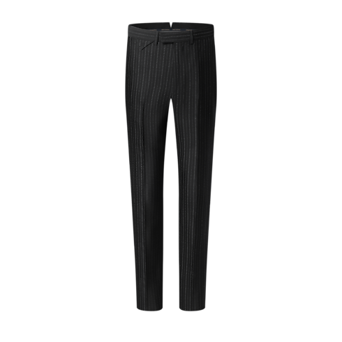 These timeless black cigarette pants are embellished with a flattering jacquard Pinstripe Micro Flower motif. The luxurious wool-silk blend fabric lends a subtle luster to the motif, while a woven LV label accents the rear waist. A matching jacket makes a sleek and elegant business suit.
