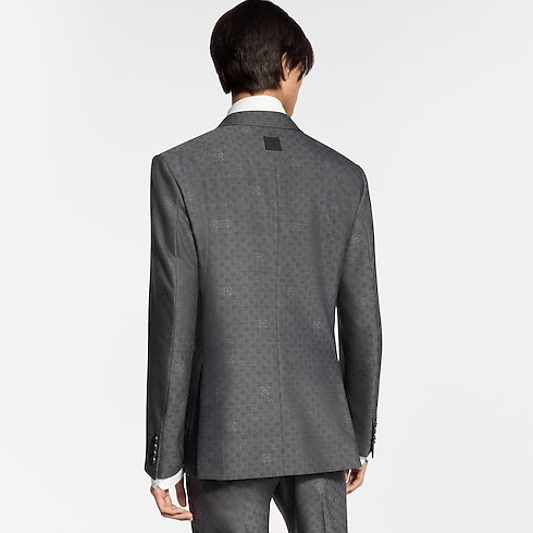Elegantly tailored in a timeless dark gray, this single-breasted Pont Neuf jacket is ideal for formal business occasions. The fine wool features a sophisticated tone-on-tone Mini Damier Seeds jacquard motif incorporating Monogram Flowers with a softly dappled effect. A peak lapel and piped pockets enhance the streamlined silhouette, which makes a chic suit paired with matching pants.
