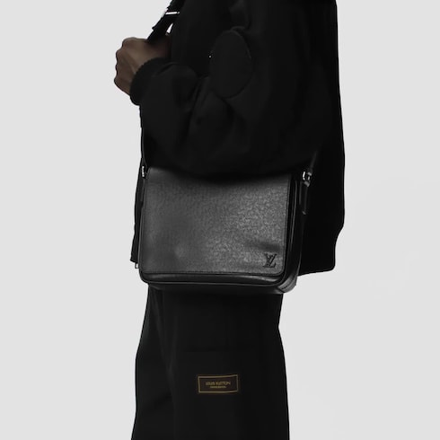The new District PM messenger bag, with its modern rectangular silhouette and functional size, is a fantastic everyday bag. Fashioned from deep-dyed Taiga leather, it features a zipped back pocket and an adjustable strap, for shoulder or cross-body wear. The strap has a D-ring to hang keys or a wallet.