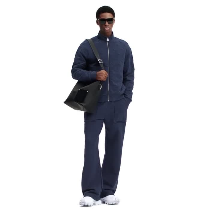 Crafted in soft, organic cotton jersey, these effortless track pants stand apart with their sophisticated embossed-effect Monogram signatures on the pockets. Available in a timeless navy blue with a comfortable drawstring waist, they are easy to mix and match across styles and seasons. A matching tracksuit top makes a chic set that is particularly well-suited for travel.