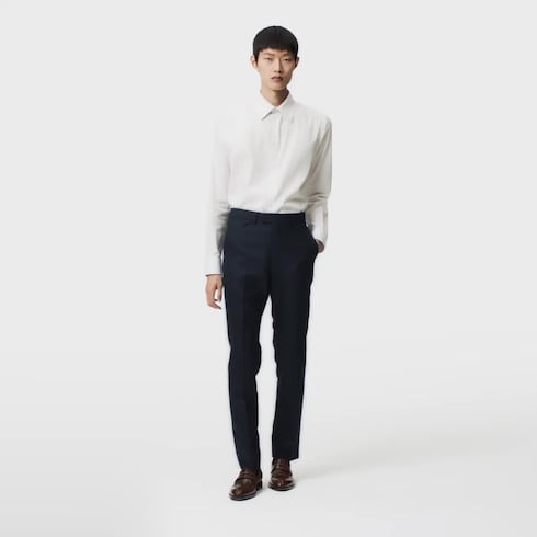 This timeless white tailored shirt in a luxurious silk and cotton blend is elevated with an embroidered tone-on-tone Louis Vuitton signature near the bottom left hem. An essential piece for completing a wide range of formal business looks.