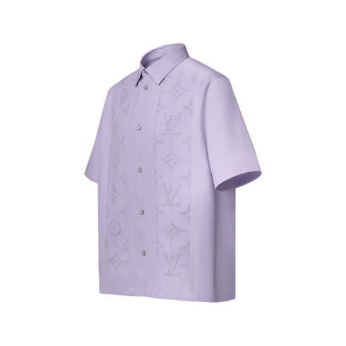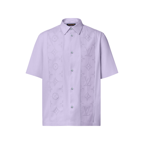 Elegant and fresh, this pale lilac short-sleeved shirt captures this collection’s cheerful spring mood. It is crafted from soft crepe cotton twill with delicate broderie anglaise signature inserts on the front. Pearly buttons add a lustrous accent to this casual yet refined style, which can be layered with other pieces in the same color.