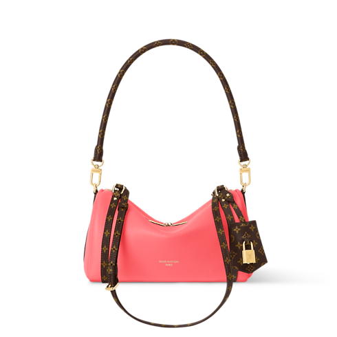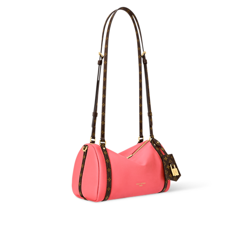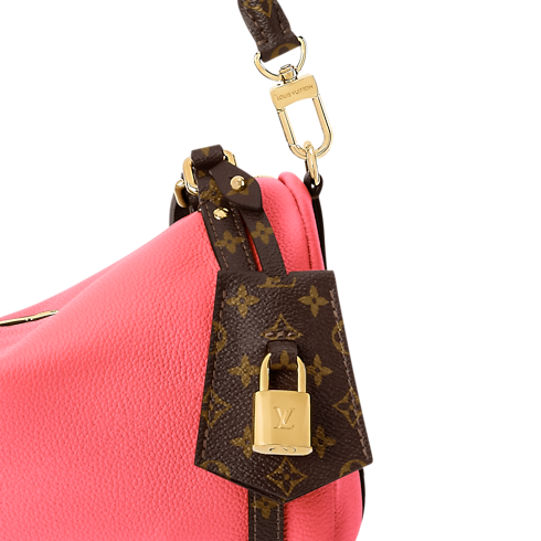 The Atomic Pink colorway on this Express PM makes a contemporary statement. It is crafted from calfskin and trimmed with signature Monogram canvas details, including a keybell and shoulder strap. The compact design is adorned with a gold-toned padlock that can also be attached to the zipper pull if desired. Inside, there is enough room to keep everyday essentials organized.