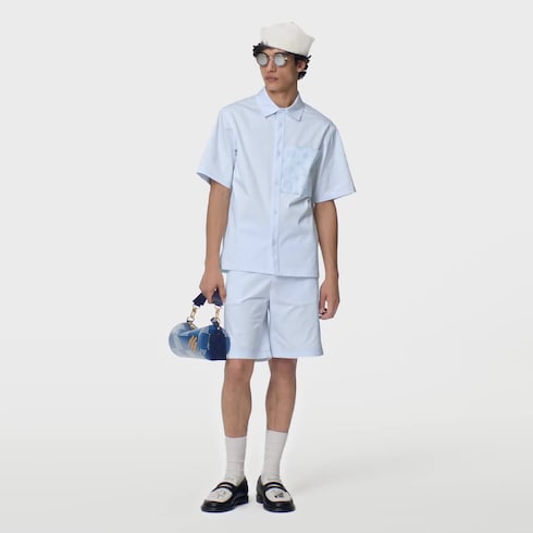 This smart cotton short-sleeved shirt is adorned with a velvety Monogram flock print across the chest, bringing a tactile twist to the workwear cut. This easy piece can be worn as an effortless summery set with matching cargo shorts.