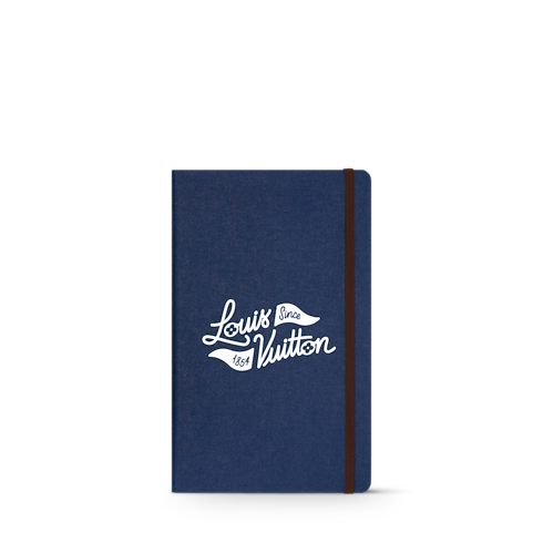 This Jane notebook MM is perfect for tracking golf enthusiasts' scores and highlights. The Louis Vuitton golf collection insignia is inscribed in white on the navy blue cover, and its size is ideal for bringing to the next round. A sheet of stickers, including Vivienne, the House figurine dressed for her next competition, adds a warm and playful energy to the pages.