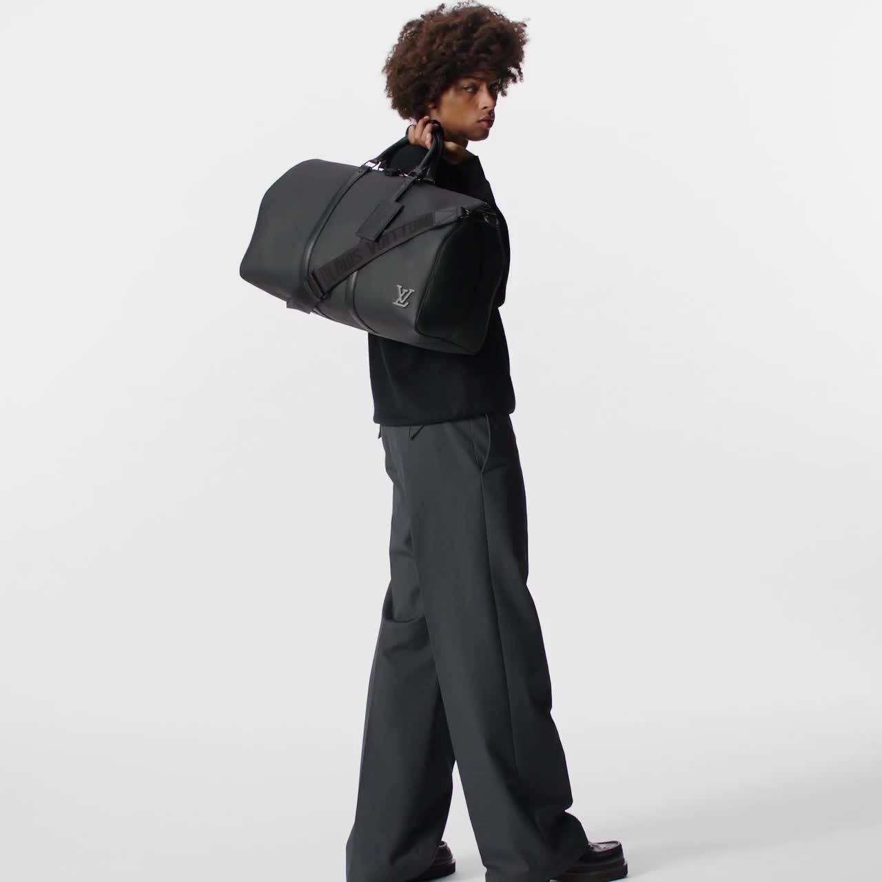 The iconic Keepall now comes in LV Aerogram leather, an exceptional material and a tribute to Louis Vuitton’s leather expertise. Ultra-fine cowhide in elegant black is enhanced with signature details inspired by the House’s travel heritage, like the leather tag and the signed Jacquard strap. And it’s a practical carryall, perfect for a weekend or as an extra cabin bag.