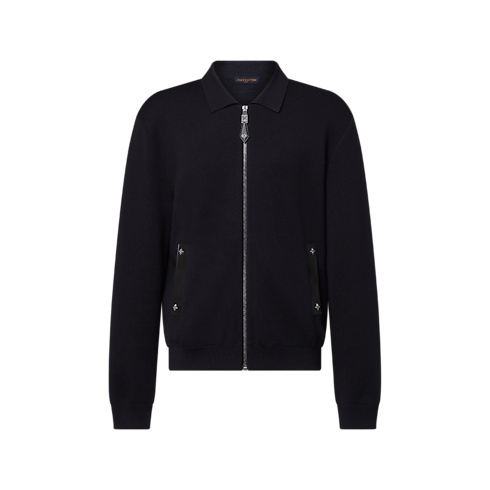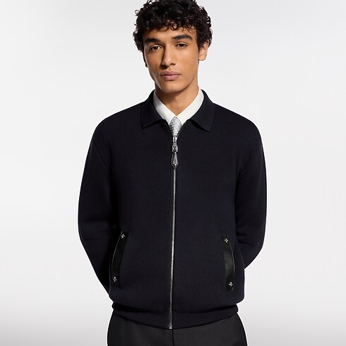 This blue-black knitted wool blouson is a contemporary yet timeless piece. It is accented with tone-on-tone leather details, including piped pockets and a zipper puller adorned with Monogram Flower rivets. It can be styled in many ways: as an elegant outer layer or under a coat, dressed up with a shirt, or more casually with a t-shirt.
