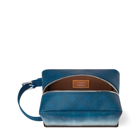 The Locker Dopp Kit is crafted from Monogram Pigment coated canvas, featuring a striking gradient Monogram Ebene motif. The technical printing process creates a vivid, layered effect. Colored leather piping and handle anchor the design, while a robust central zipper and spacious interior make it a standout choice for grooming essentials.