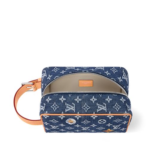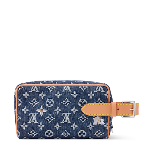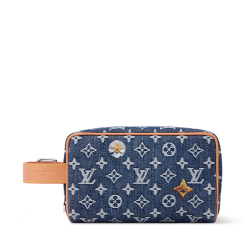 The Locker Dopp Kit takes on a spring-like feel in Monogram Denim, embroidered with delicate florals. Ideal for grooming essentials, it features a wide zipped opening and a washable textile lining. The cowhide-leather handle includes a silver-toned buckle, allowing the length to be adjusted for comfort and convenience.