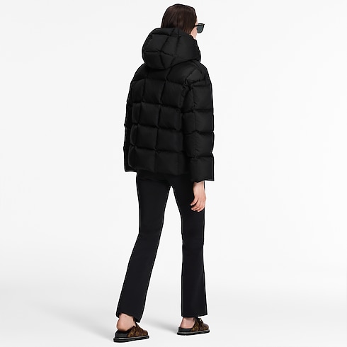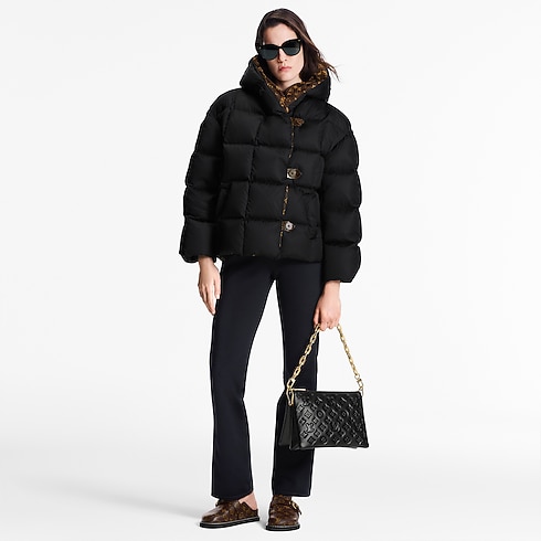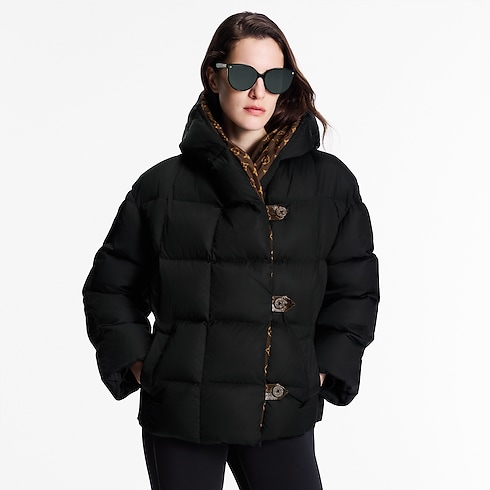 A chic, sporty long-sleeved puffer jacket inspired by the Spring-Summer 2021 collection’s instantly iconic Pillow Boots. Cut from quilted nylon ripstop with a Monogram lining that can be glimpsed inside the ample hood, with coordinating Monogram canvas fastenings. Padded with genuine feathers for a snug feel, amped up by elasticated cuffs to keep out the cold.