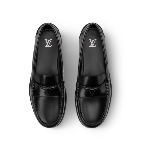 The LV Croisette loafer balances elegance and comfort with its beautifully crafted upper in waxed calf leather and its supple rubber outsole, designed for ease and lightness. Revisiting the classic preppy loafer, the upper is embellished with a tone-on-tone debossed Monogram Flower on the strap, while the heel is discreetly signed with the LV Initials.