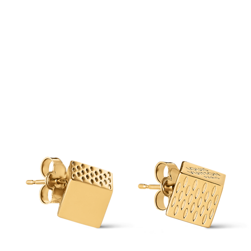 The strikingly original design of the LV Cube earrings was inspired by Pateki, a puzzle game devised by Gaston Vuitton in 1932. Cubes of lustrous gold-colored metal are adorned with engraving that evokes the House’s iconic Damier canvas, complete with the Louis Vuitton Paris signature. These fun, eye-catching earrings add a touch of playful elegance to any look.