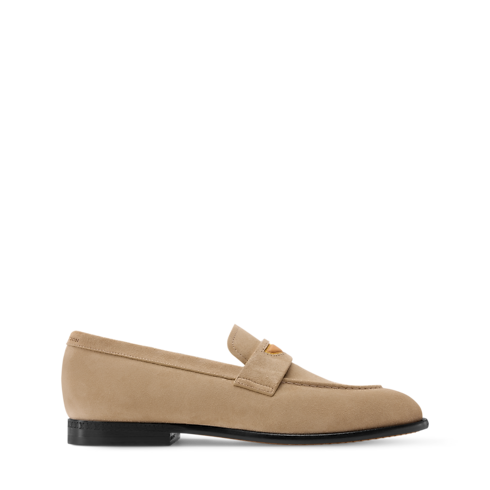 Crafted from suede calf leather, the LV Gent loafer has an exceptionally soft, supple feel, the result of both its fine material and its traditional sacchetto construction. The strap on the upper is embellished with a natural leather insert, which is embossed with the LV Initials and accented with yellow stitching, recalling the House's leather goods.