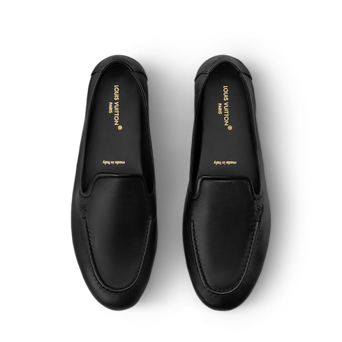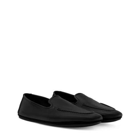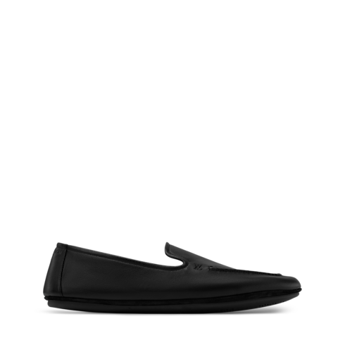 The LV Horizon slipper is crafted from ultra-soft napa lambskin, ensuring exceptional comfort. In addition, its sacchetto construction, a testament to the House's shoemaking know-how, provides lightness and flexibility, making this an essential of elegant travel. It bears the LV Initials on the side and the Louis Vuitton Paris signature on the heel.