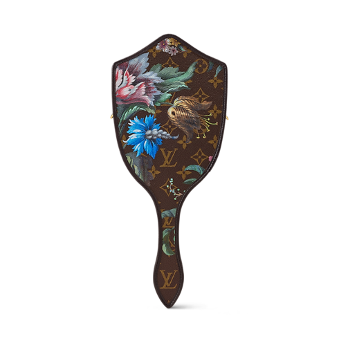The LV Mirror will lend a fairytale-inspired finish to any look it is styled with. This playful design is crafted from signature Monogram canvas patterned with vibrant florals that contrast the cowhide trims. It comes with a removable strap and closes with a gold-toned zipper to keep small essentials secure.