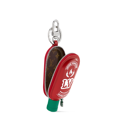 The LV Spicy bag charm pays playful homage to the culture of street food. Fashioned in Italy, the vibrantly hued bottle of the sauce is designed with Louis Vuitton signatures. The inside is crafted from the iconic Monogram canvas. It also doubles as a zippered pouch equipped with a silver-toned key ring and hook to keep small treasures close.