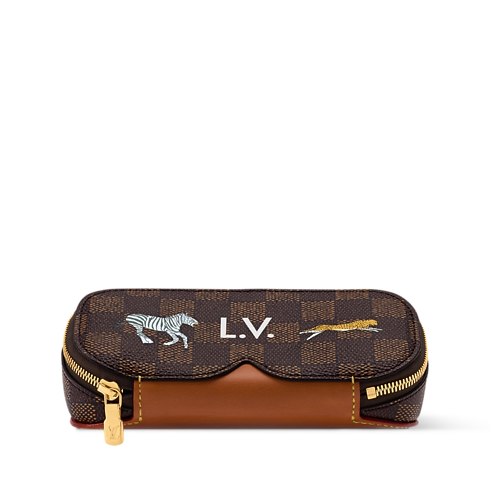 The zip-up Louis Vuitton x The Darjeeling Limited Anna sunglasses pouch is a practical must-have. The case is adorned with palm trees and leaping wild animals, illustrations taken from the House's role as trunk maker in Wes Anderson's 2007 film. Now, these elements serve as the centerpiece for a new collection that honors the richness and variety of inspirations from India.