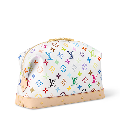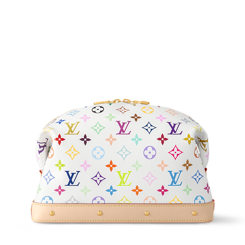 This timeless Cosmetic Pouch GM is vibrantly refreshed with multicolored Monogram coated canvas from the cross-category Louis Vuitton x Murakami collection, inspired by the Japanese artist’s signature rainbow palette. A studded natural cowhide leather trim adds an edgy twist to the design. An extra-wide golden zipper allows easier access to the roomy inside compartment, which is finished with a practical washable textile lining.