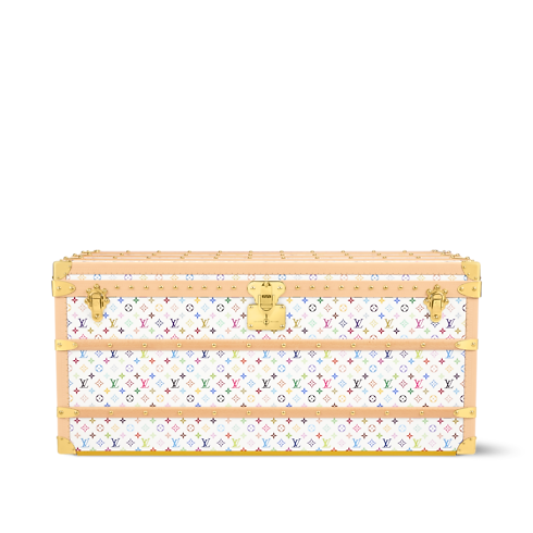 An emblem of the House, this Courrier Lozine 110 has been vibrantly reimagined in rainbow tones as part of the celebratory re-edition of the Louis Vuitton x Murakami collection. Natural cowhide leather highlights the structure of the case, complete with studded lateral bands, while gleaming golden hardware accents the corners and closures. The inside is organized with two removable trays with leather handles, while the top of the lid is detailed with iconic Malletage quilting.