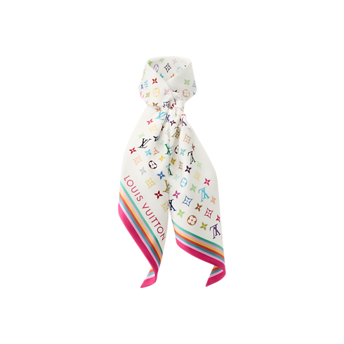 The all-silk LV x TM Monogram Multicolor lavaliere features an eye-catching pattern created for the House’s exclusive collaboration with Takashi Murakami. The Japanese artist’s bright, cheerful version of the Monogram signature appears as an allover print accented by a multicolored border. An elegant, easy-to-wear lavaliere, ideal for adding a burst of upbeat energy to any stylish outfit.