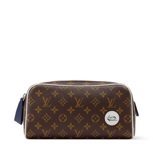 Made from Monogram canvas, this Dopp Kit features a white Louis Vuitton patch as part of the LV Golf collection. A wide double zipper attached to a leather handle offers easy access, making it ideal for grooming essentials. It’s also perfect for keeping small items like a phone or wallet organized and close at hand.