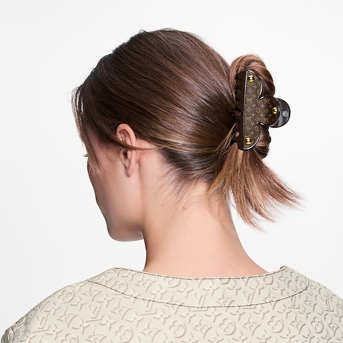 The stylish and versatile MNG Resin claw clip combines practical functionality with a heritage-inspired design. Crafted in durable resin, it features the classic Monogram pattern, accented with gold-colored metal studs recalling the rivets on the House’s historic luggage creations. Ideal for keeping any hairstyle perfectly in place with a distinctive signature touch.
