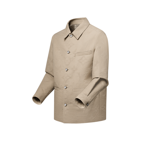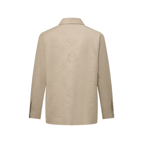 This chic cotton overshirt is adorned with the Spring-Summer 2025 show’s Safari Monogram motif, expressed in tone-on-tone embroidery with a 3D effect. Pearl-effect buttons stand out against the gray tones of this casual yet refined style, which can be paired with matching pants for a signature look.