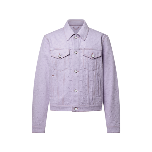The denim trucker jacket is reinvented in a joyful lilac color that captures the fresh mood of spring. It features a jacquard Monogram motif while the fabric is overdyed, resulting in a unique, softly textured look. Tone-on-tone pearly buttons add a chic finishing touch. Pair with matching shorts for an eye-catching set.