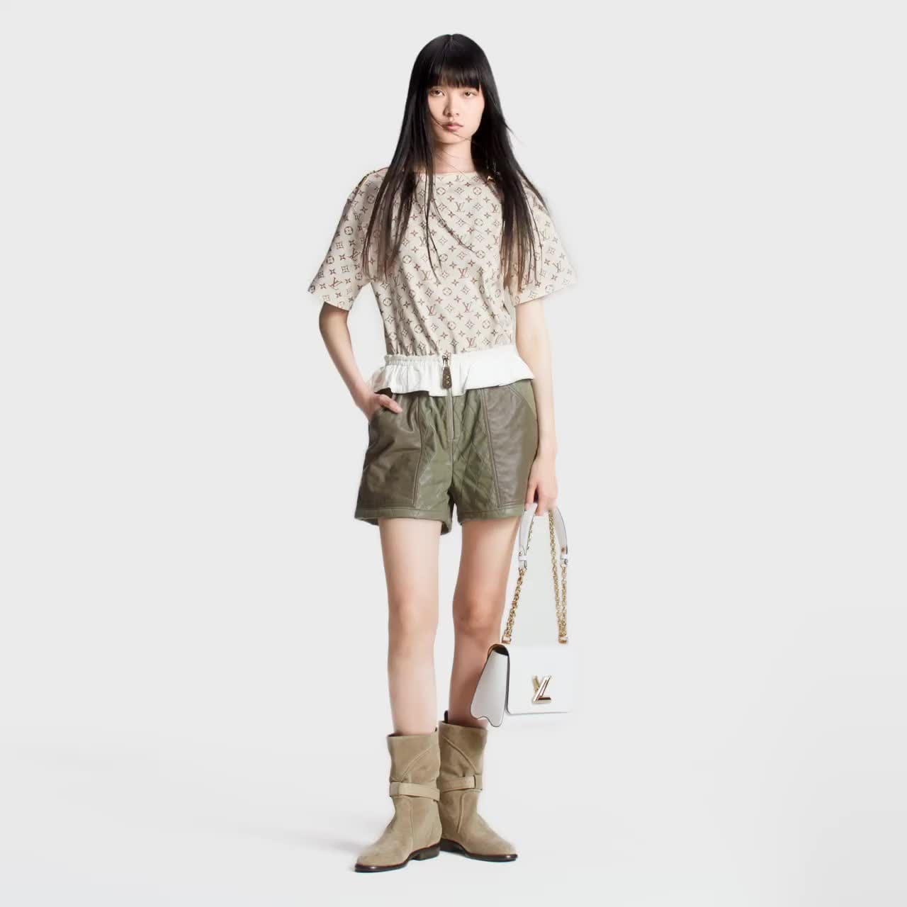 This casual T-shirt is elevated with an elegant bateau neckline, which is trimmed with this season’s essential golden zipper embellishment for a rebellious twist. Cut from comfortable cotton jersey, an allover print of the Monogram motif in a soft shade completes the look with a graphic signature.