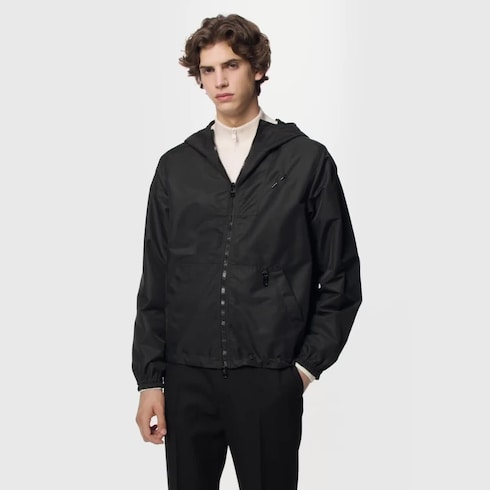 Made from water repellent technical fabric, this elegant reversible windbreaker has a plain matt side embellished with a carabiner and a pin signature on the left chest, while the other side features an allover tonal Monogram jacquard. This versatile piece for changeable weather is easy to wear and match, making it a perfect addition to any wardrobe.