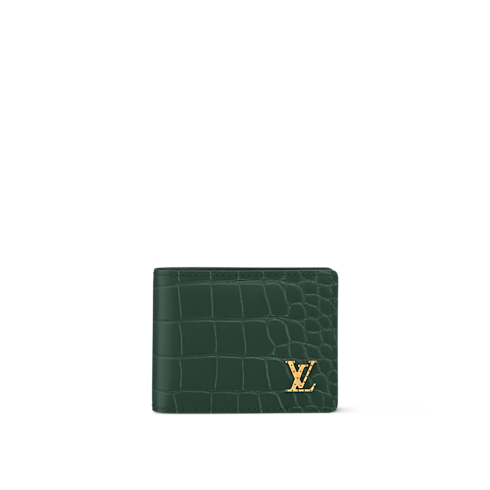 The Multiple Wallet is crafted from what Pharrell Williams calls “Butter Crocodile,” a supremely soft and supple crocodilian leather. Its rich colorway, distinctive scale pattern, and aged-gold-tone LV Initials with tiny rivets make this piece quietly glamorous. Lined in tone-on-tone goatskin, the interior offers card slots and multiple compartments.