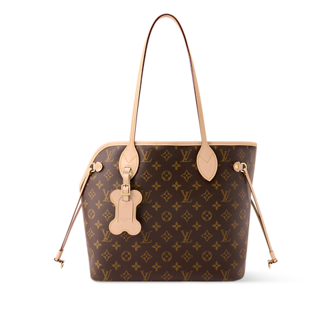 Fashioned from Monogram coated canvas with natural cowhide-leather trim, the Neverwoof MM brings pet carrier functionality to the iconic Neverfull carryall. It features a front opening for a pet’s head and a padded interior with a removable, washable soft mat. A bone-shaped name tag adds a whimsical touch.
