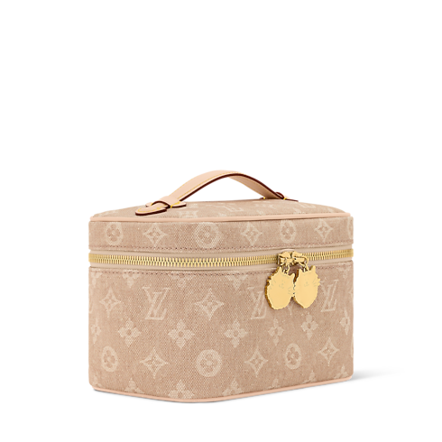 Part of the House’s collaboration with Grace Coddington, the Nice Mini vanity case is crafted from Meowgram canvas: a whimsical reinterpretation of the Monogram motif, inspired by a 1900s House trunk. Celebrating Coddington’s love of cats, it features cat-shaped zipper pulls and a washable, ruby-red textile lining.