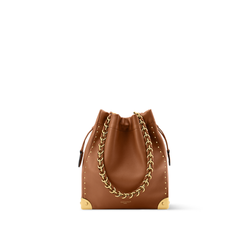 Introducing the Noé Trunk, an elegant bucket-shaped style that is both timeless and contemporary. Crafted from smooth calfskin, it is adorned with sleek gold-toned hardware, including trunk-inspired corners that nod to the House’s iconic travel heritage, as well as a removable braided chain. It is designed with a drawstring closure to keep valuables secure.